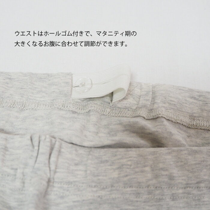 ウエストはホールゴム付きで、マタニティ期の大きくなるお腹に合わせて調節ができます。