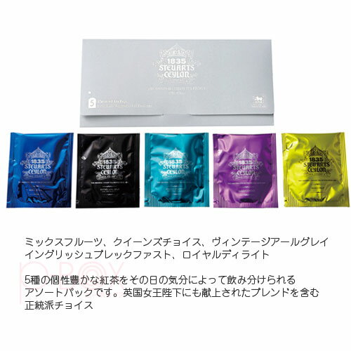 内容フレーバーティーセットサイズH10×W20×D1cm商品説明●フレーバーティー5Pセット(ロイヤルディライト、ヴィンテージアール グレイ、イングリッシュブレックファスト、 クイーンズチョイス、ミックスフルーツ 各1P)★