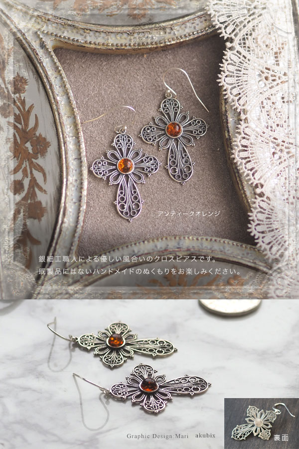 【天然琥珀】シルバークロスピアス【送料無料】【ak0518】【イヤリング】【チタン】【金属アレルギー】【Silver925】【天然石・パワーストーン】お守り 魔よけ ギフト 贈り物 プレゼント ジュエリー こはく アクセサリー アンバー