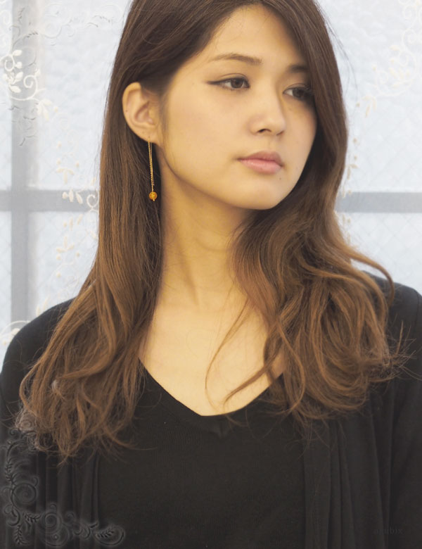 【再入荷】アンバー(琥珀)の一粒ピアス・14KGF/天然石アクセサリー・ゴールドフィルドジュエリー