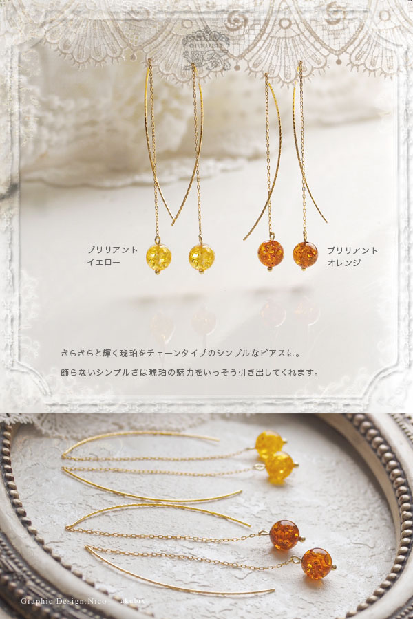 【天然琥珀】チェーンピアス スイングピアス こはくアクセサリー 【スタッドピアス】【ak0779】【ゆうパケット(追跡可能メール便)】【3ツ星ランク】【イヤリング】【gcsimpi】【天然石・パワーストーン】ギフト 贈り物に プレゼントに ジュエリー
