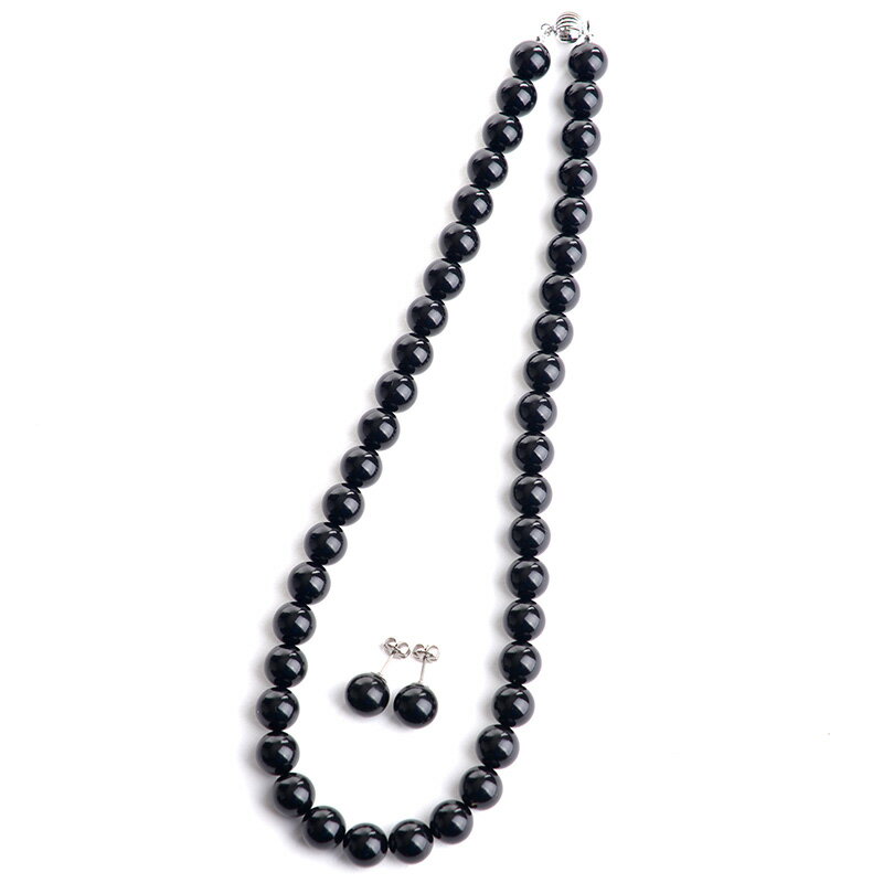 10mmジェットネックレス ピアス イヤリングセット【化粧箱付】黒琥珀 16インチ 17インチ 18インチ 42cm 45cm 47cm チョーカー プリンセス