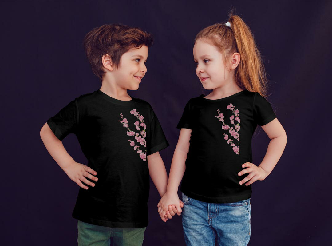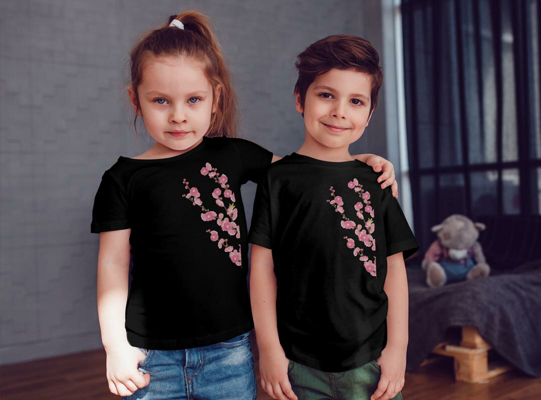 tシャツ キッズ 半袖 黒地 ブラック デザイン 90 100 110 120 130 140 150 Tシャツ ティーシャツ T shirt 012863 ひな祭り 桃の花 節句