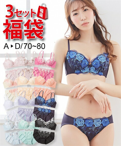 福袋 ブラジャー & ショーツ セット レディース Fairyおまかせ デザイン 3セット組 年中 アソート A65_M〜D80_L ニッセン