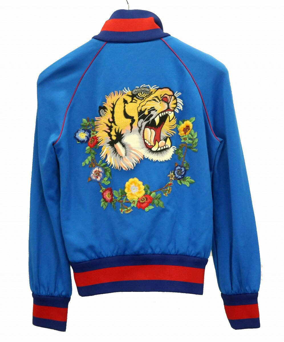 【アパレル】GUCCI グッチ タイガー 虎 フラワー 刺繍 ライン ジャージ 上着 ポリエステル ナイロン コットン ポリウレタン ブルー 青 レッド 赤 マルチカラー #L 【中古】